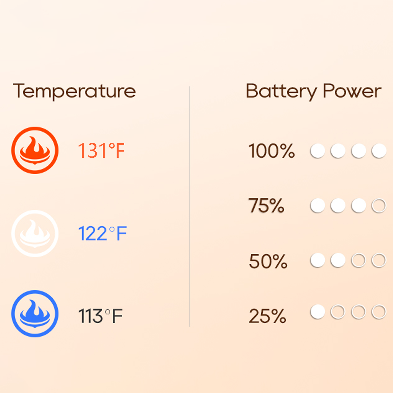 Blue Low Heat (113°F ): Max Endurance: Gentle heat, maximizing battery life up to 7 hours.