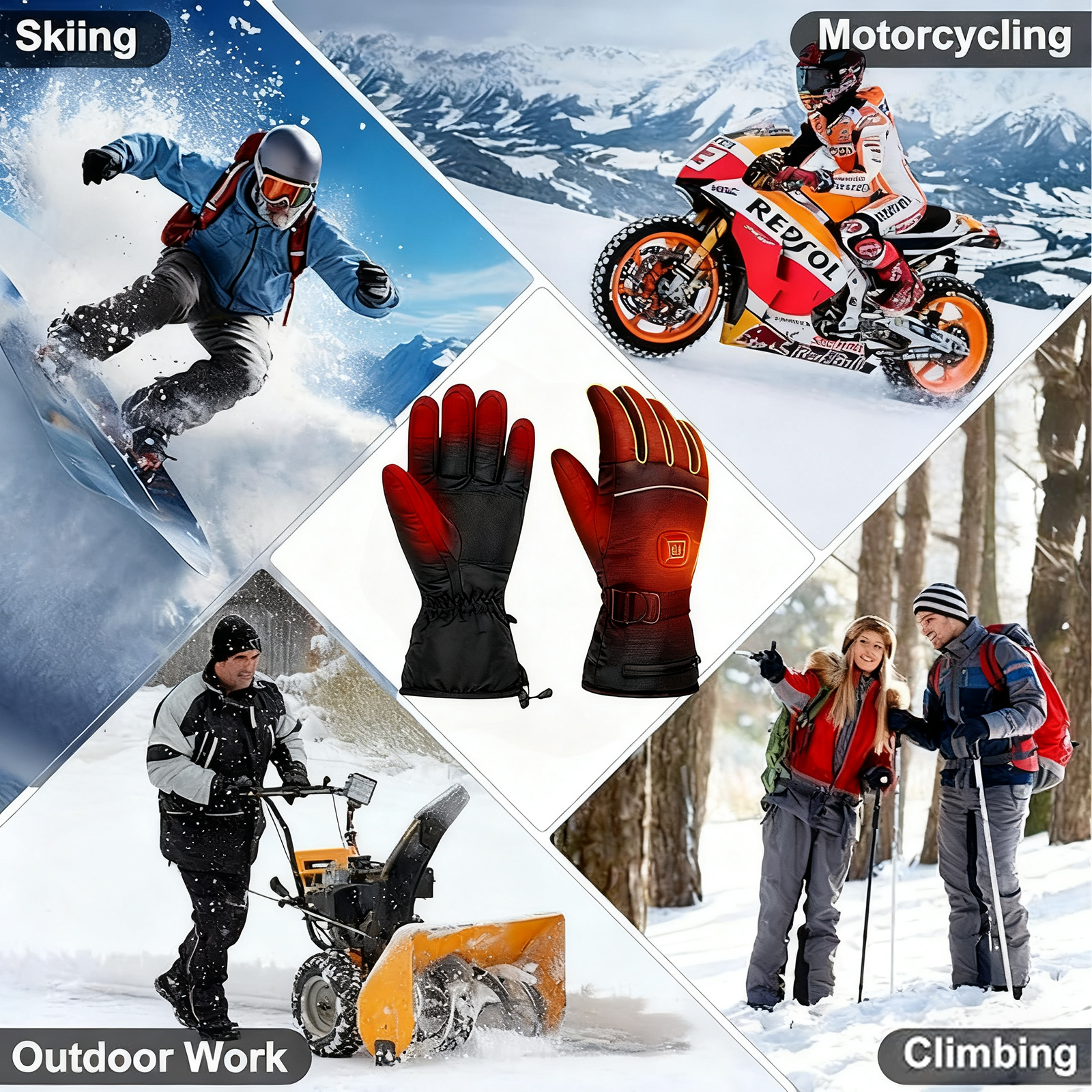 - Full-Finger Heating — Keeps all your fingers warm and comfortable in the cold.