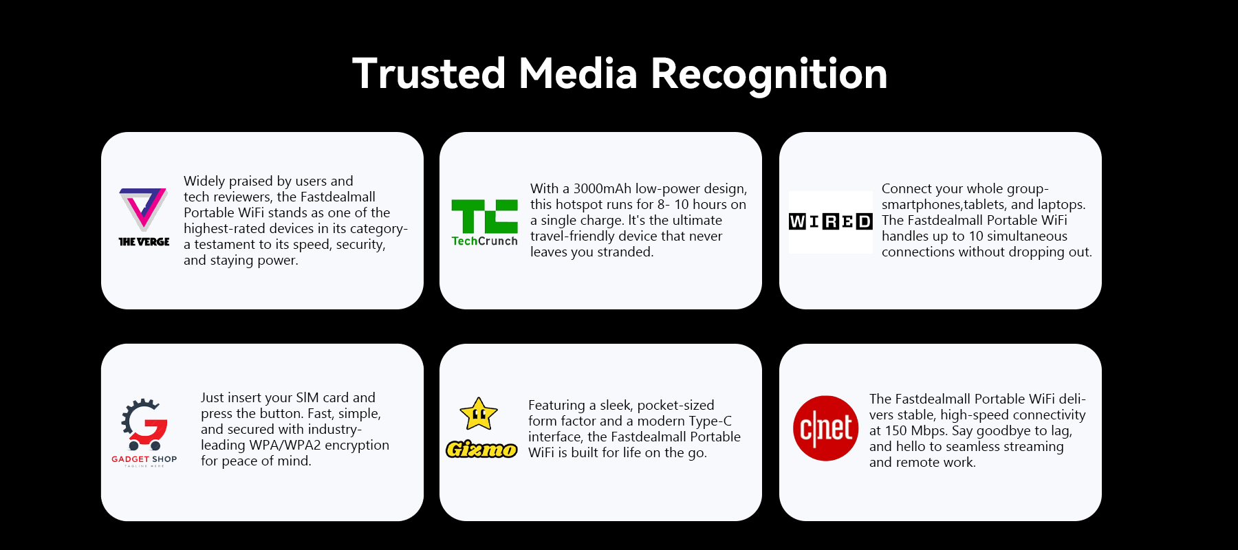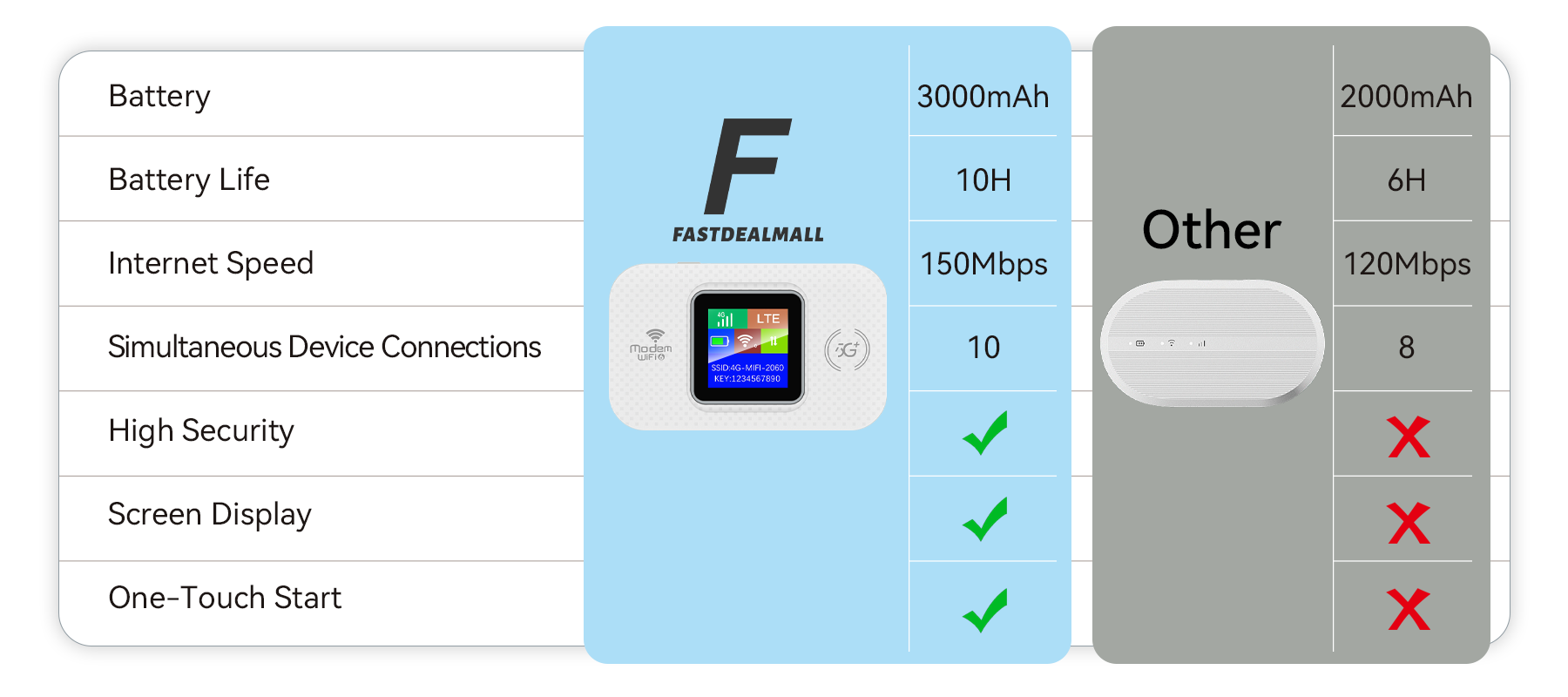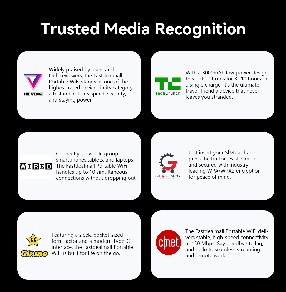 Thus, Fastdealmall was born. The brand focuses on compact design and portability, combined with advanced wireless technology and smart features, ensuring users enjoy high-speed, stable internet while easily carrying and using the device, staying connected anytime, anywhere.